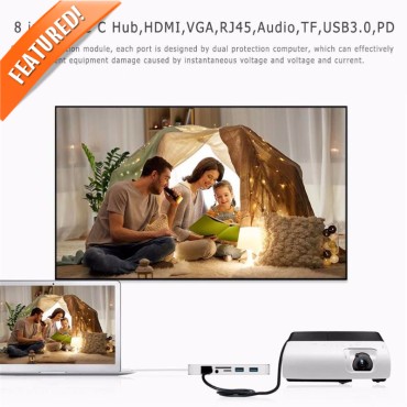8 in 1 USB Type-C to HDMI + RJ45 + PD + Audio + USB 3.0 * 2 + SD + TF Port Type-C Adapter for Mackbook Laptop Cellphone